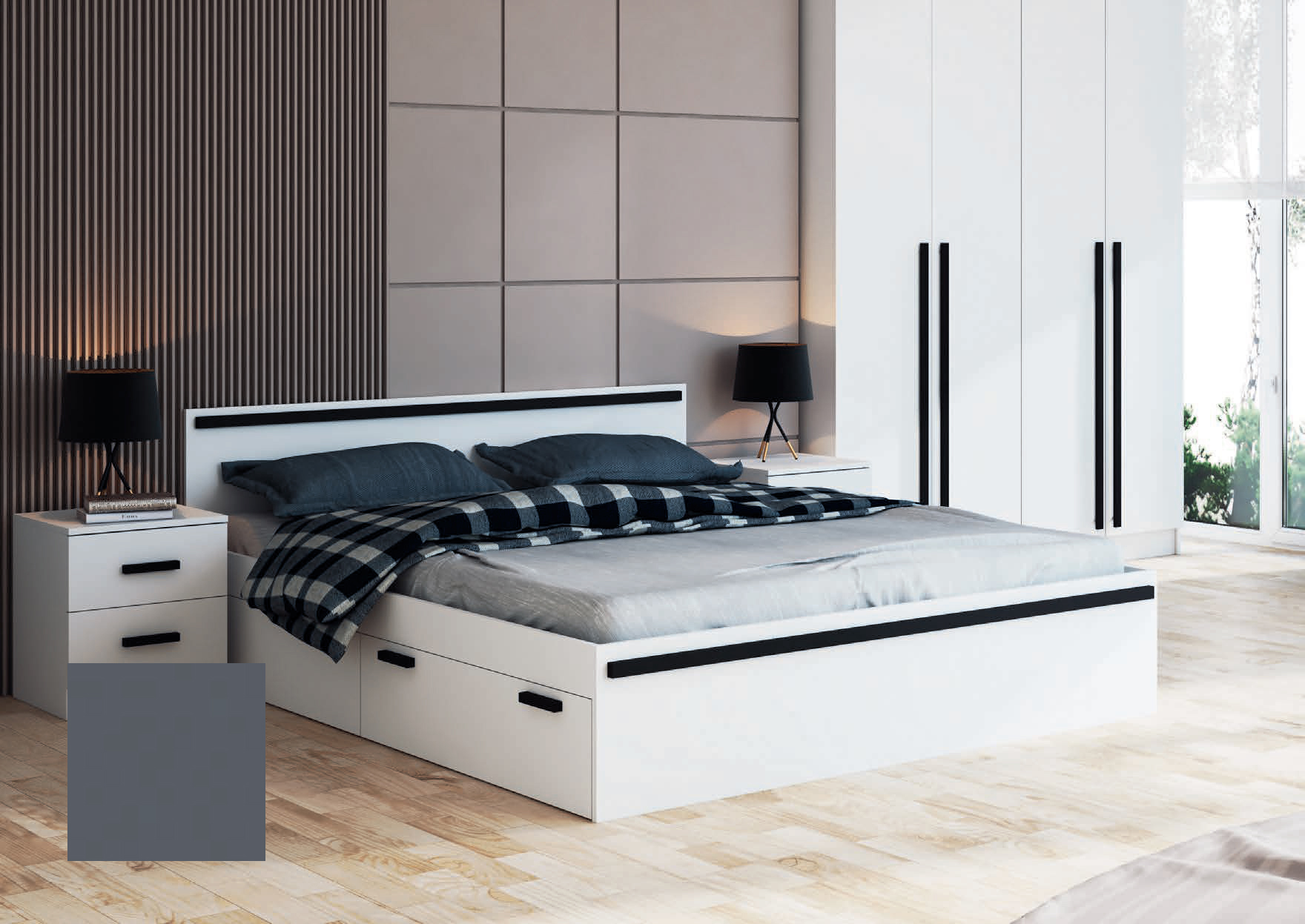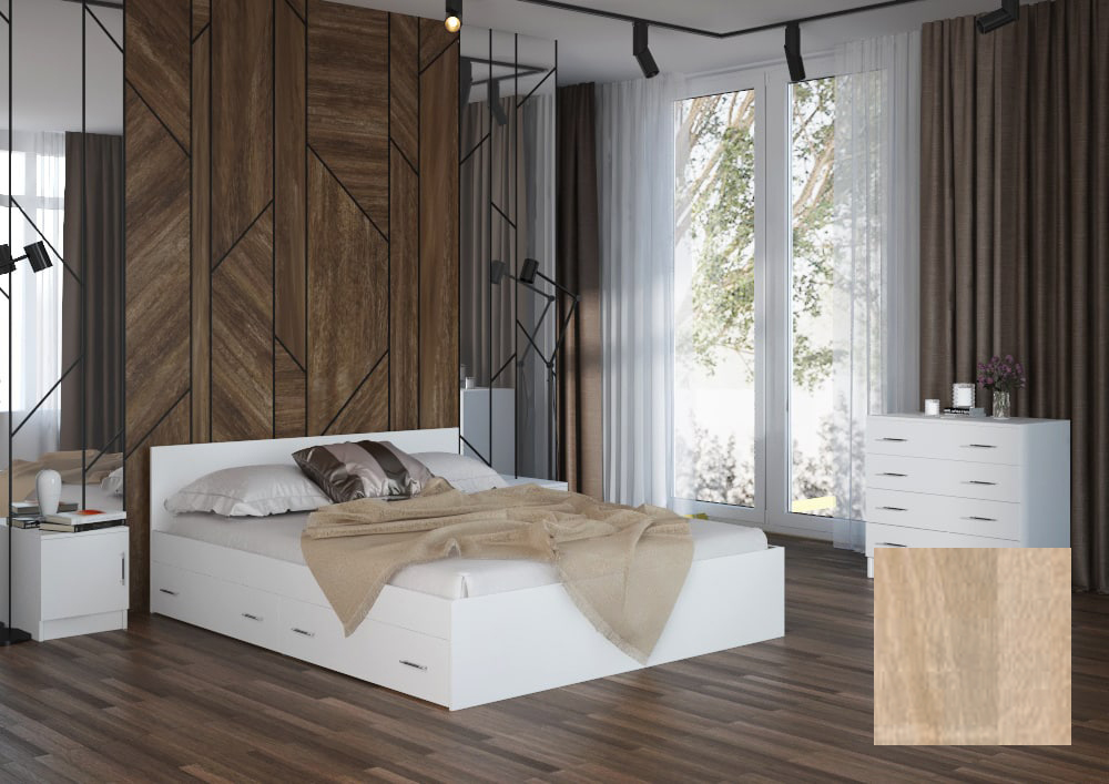 САНРЕМО ТМ-004 Тумба прикроватная правая кор-дуб сонома светл,фас-Ателье тёмное/дуб сонома св остатк