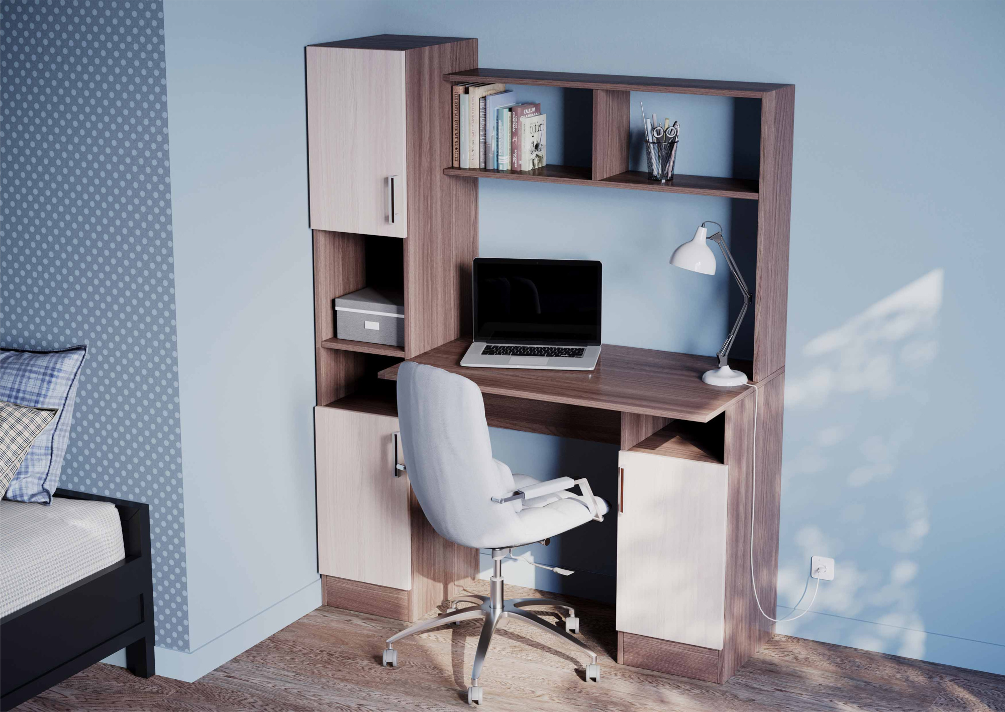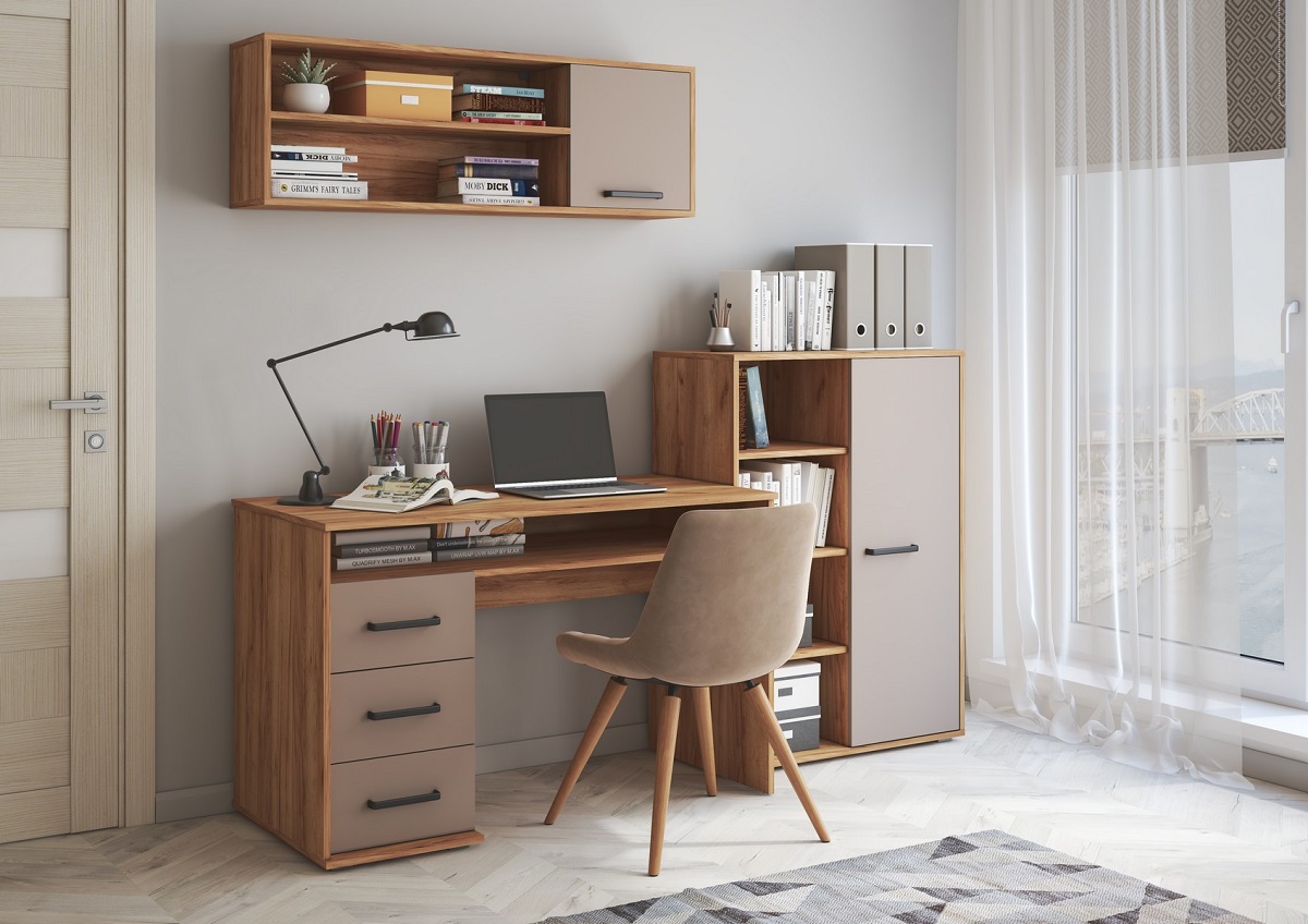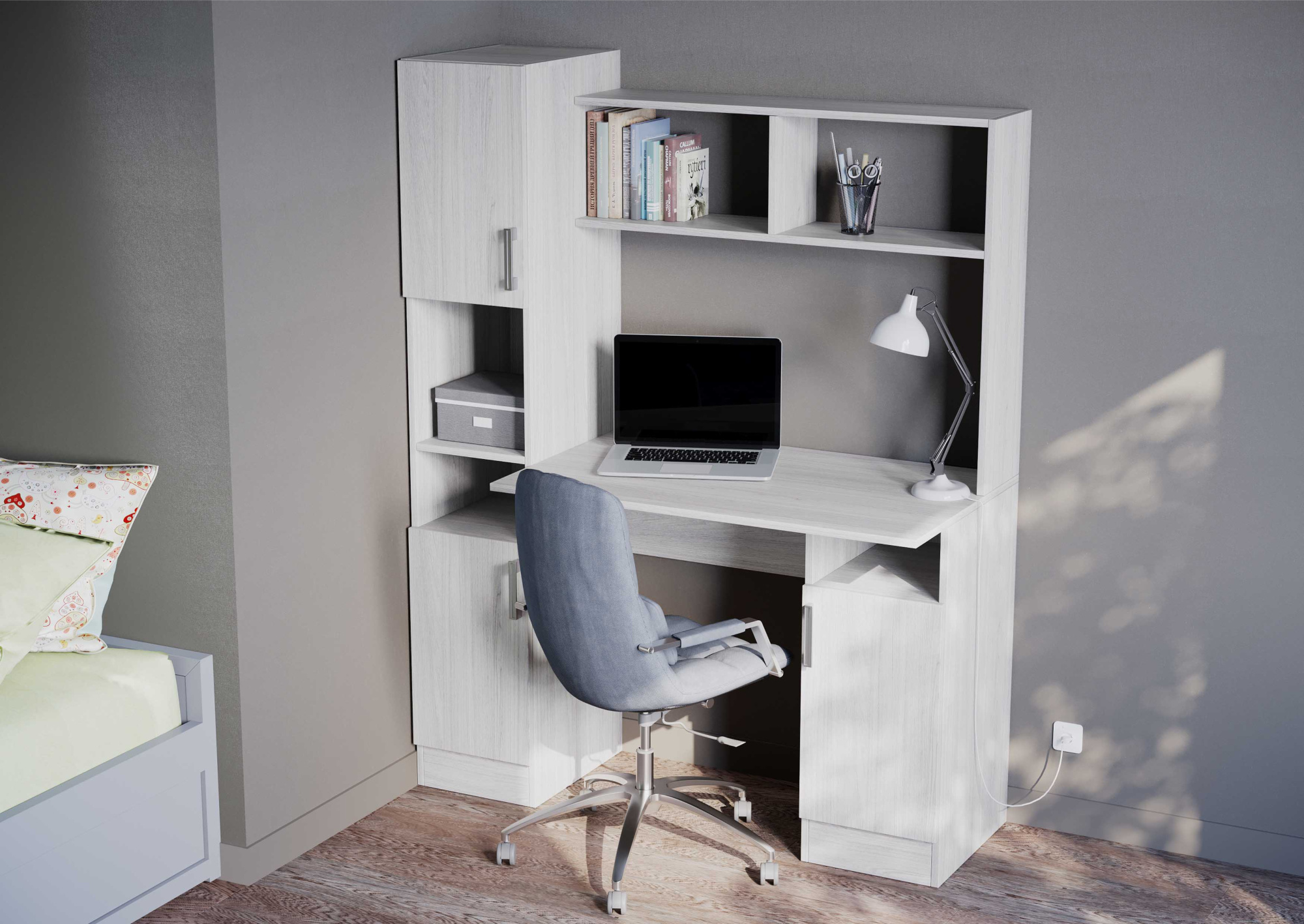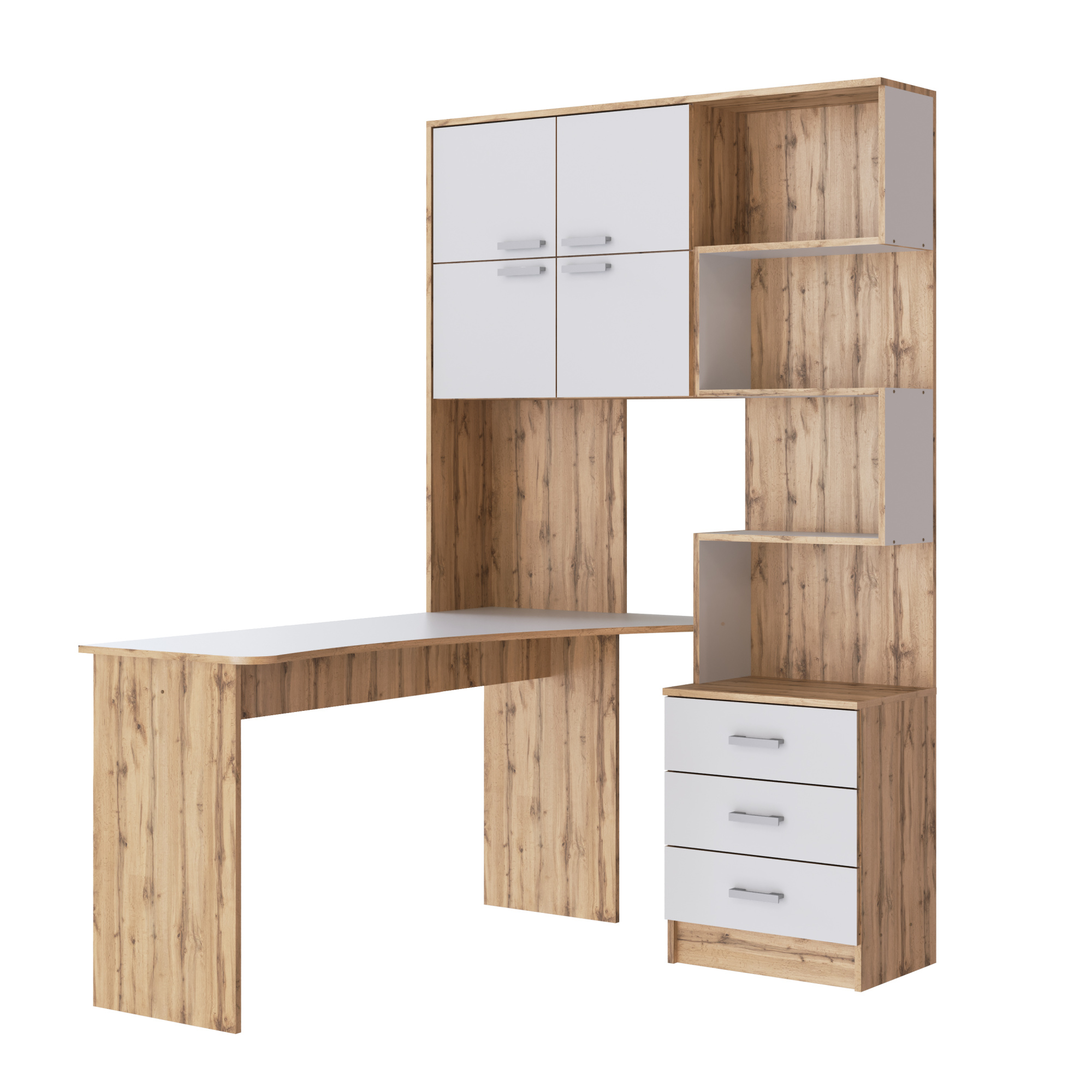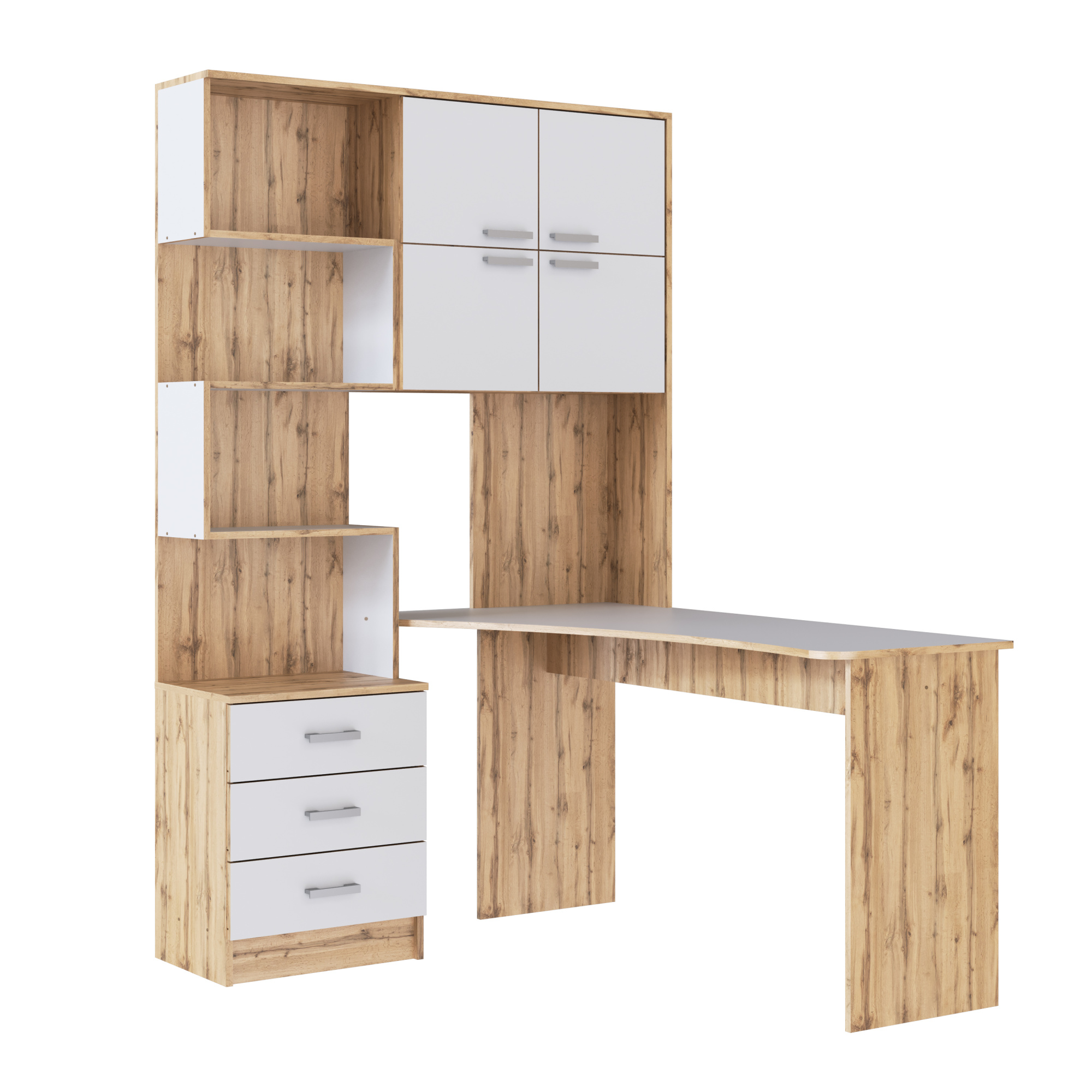 ПАСКАЛЬ Стол СТ 105 (Уголок школьника) (Комплект) Корпус-Дуб Сонома светлый, Фасад-глянцевая Белый о
